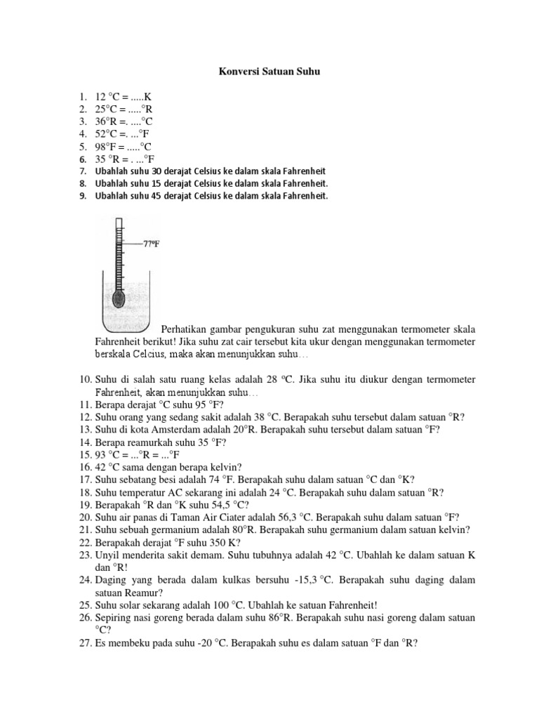 Konversi Satuan Suhu / Modul Rumus Soal Konversi Satuan Wardaya College / Nilai tukar mata uang asing, mata uang:. Di amerika serikat, suhu fahrenheit paling umum digunakan, meskipun sistem satuan internasional (unit si) celcius (atau celsius) digunakan di sebagian besar dunia. * suhu tubuh manusia normal adalah 36,8 °c ±0,7 °c, atau 98,2 °f ±1,3 °f. Artikel ini membahas tentang cara konversi (mengubah) satuan suhu dari celcius ke reamur, fahrenheit, kelvin lengkap dengan rumus, contoh soal dan pembahasannya. Metric (s.i.) 21 °c =. Pengonversi satuan online ini memungkinkan konversi yang cepat dan akurat antar banyak satuan pengukuran, dari satu sistem ke sistem lainnya.